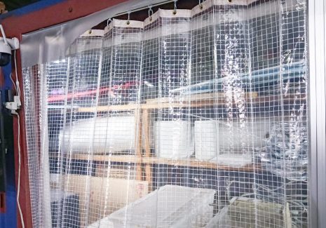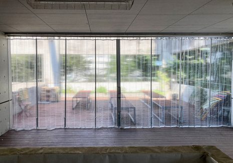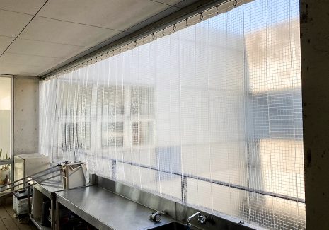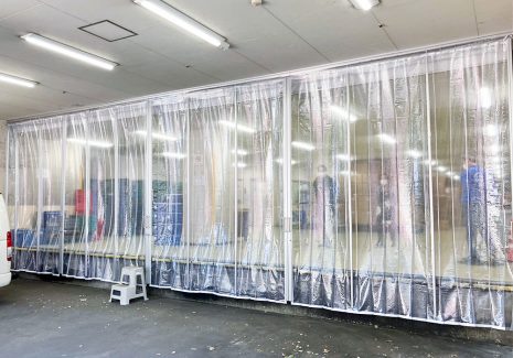 テント倉庫にも使用される耐候性・耐久性の高いビニールを使用したカーテンです。