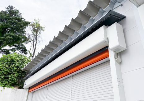 • 外付けのシートシャッターに雨よけ庇テント設置