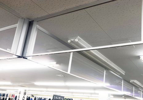 リサイクルショップのガラス製防煙垂れ壁を撤去して不燃シート製防煙垂れ壁を設置しました。