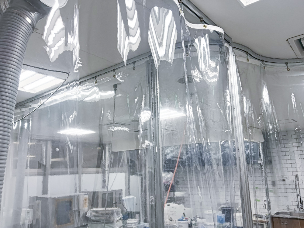 工場や研究施設の間仕切りビニールカーテン設置は、お見積り無料のビニテックへお気軽にご相談ください!
