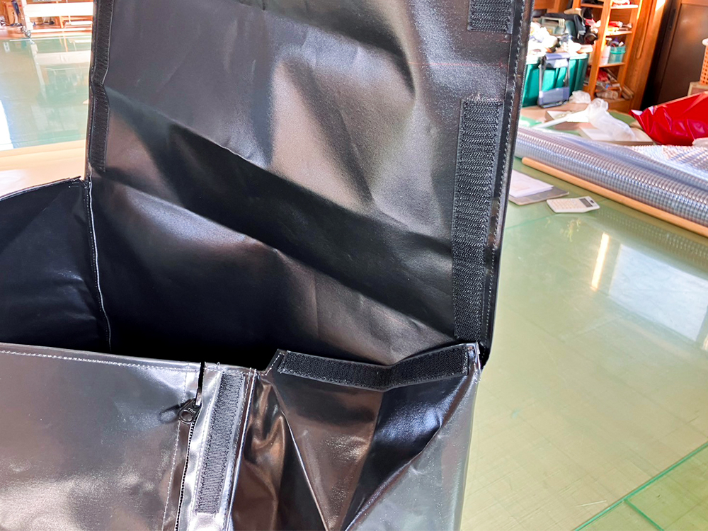 音楽機材用のオーダービニールカバーをご注文頂きました。 音楽用機材を持ち運ぶ際に機材を保護するためのカバーをご希望でした。箱状のカバーに機材を収納した後、天面の蓋をマジックテープで閉じられる構造になっています。機材の上部には持ち運び用の取手がついているため、その取手をカバーの外に出せるようにしました。また、機材を出し入れしやすいように、正面をジッパーで開閉できるようになっています。 軽くて防水性の高いものをご希望でしたので、カバー生地にはハリケーンを使用しました。ハリケーンはテント倉庫にも使用される耐久性の高いビニール生地で、吸水防止機能・フッ素防汚加工が施されています。 機材・機械を保護するオーダービニールカバーのご相談は、お見積り無料のビニテックへお気軽にどうぞ! |