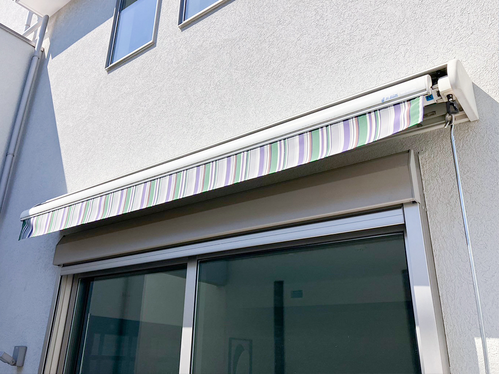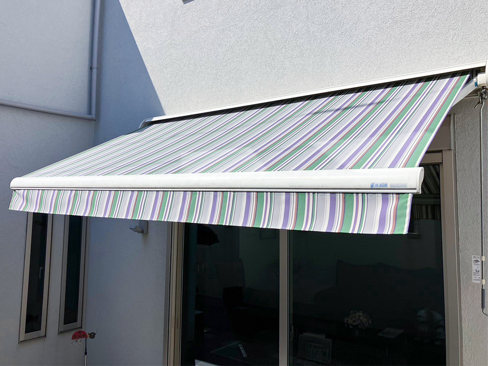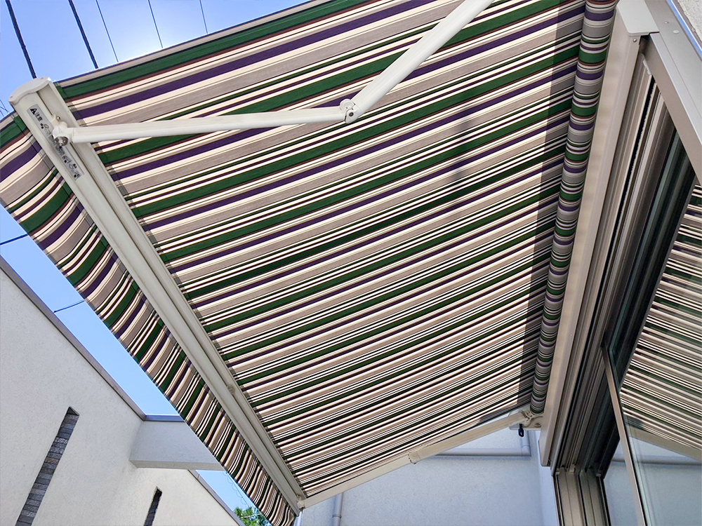 杉並区にあるお宅のオーニングテントを生地交換しました。 元々の生地は色褪せや汚れのほか、生地がヨレてつなぎ目も裂けている状態でした。これは経年劣化によるものだけでなく、逆巻きで使用してしまったことで雨水が溜まって生地の痛みを促進してしまった事も考えられます。 通常のオーニングはロールの上から生地が出ている状態が正常ですが、限界まで引き出した後もさらに同じ方向に巻き続けると、逆巻きで収納されてしまいます。逆巻きの状態でもオーニングの展開・収納自体は問題なくできるため間違いに気づかないことも多いのですが、キャンバス生地がロールの下から出ている分、正常な状態よりも傾斜が緩くなり、雨水が溜まりやすくなっています。雨水が溜まると生地が伸びて繋ぎ目が裂けたり、湿気や汚れが溜まってカビやすくなったり、巻く時にシワができたりと、生地の傷みの元になります。 逆巻きを防ぐために、生地を必要以上に引き出さない使用法をおすすめしています。メーカーでも、適正な引き出し位置を示す「STOP」シールを用意しています。 新しい生地は布調で高級感のあるポリエステル生地のシャガールアートです。原料に着色した原着繊維を使用しているため色褪せしにくいという特徴があります。PVC製のテント生地と比べると耐久性はやや劣りますので、正しい使用法をおすすめしています。 オーニングテントの新設・張替えのご相談は、お見積り無料のビニテックテントへお気軽にどうぞ。 |