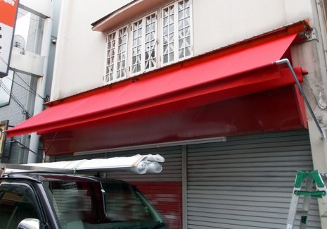飲食店テラス席の固定テント交換+ビニールカーテン設置