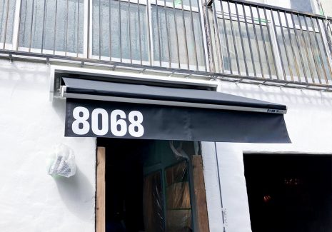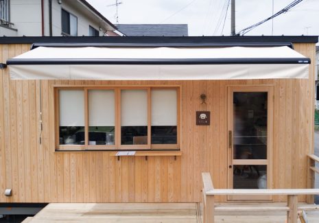 トレーラーハウスの焼菓子店にオーニングテント設置