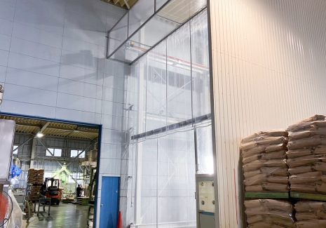 工場の高所間仕切りに電動ビニールカーテン(動画あり)  エリア:千葉県旭市