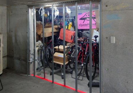 車庫に防鳥用ビニールカーテン(お客様施工)