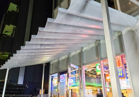 飲食店テラス席の寒さ対策にビニールカーテン+化粧テント