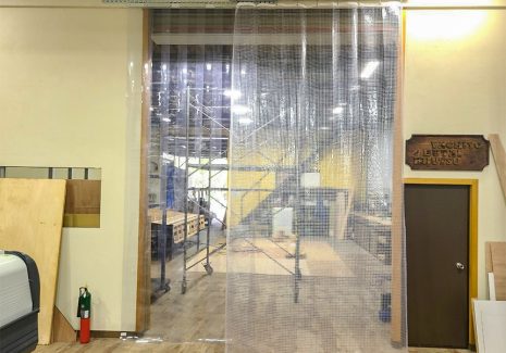 舞台美術制作の作業場に防塵用ビニールカーテン