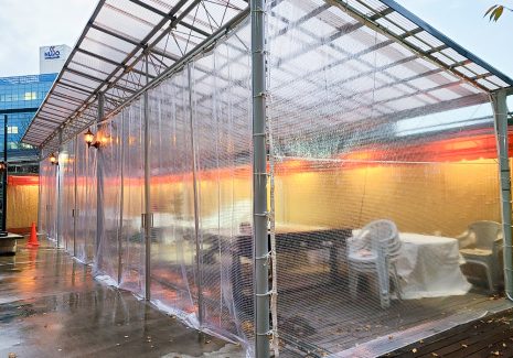 飲食店外席に巻き上げ式ビニールカーテン設置