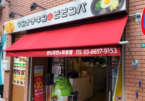 韓国スープ専門店のL字型軒先固定テント&袖看板交換
