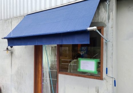新規開店の飲食店に巻き上げ式テント新設