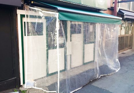 立ち飲み飲食店のオーニングにビニールカーテン設置  エリア:東京都中野区