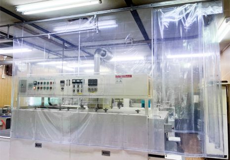 • 高温になる機械の周囲を耐熱透明カーテンで間仕切り